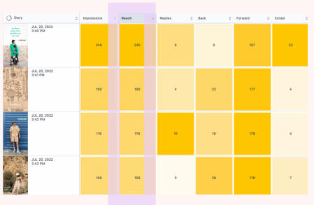This chart highlights the top 4 Instagram Stories based on Reach (how many unique viewers watched the content). The IG stories that