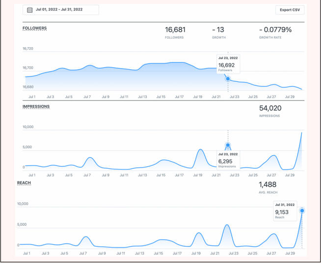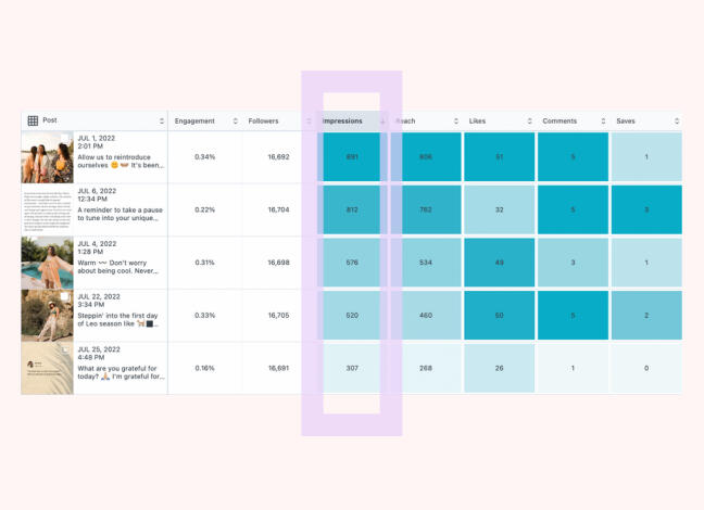 The purple bar indicates the impressions of each of these posts.The